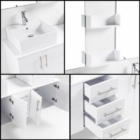 Icaverne Salle De Bain Complete Cina Ensemble Salle De Bain Double Vasque L 150 Cm Blanc Laque Brillant Pas Cher Achat Vente Meubles De Salle De Bain Rueducommerce
