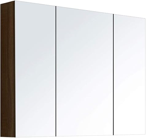 Gxfc Meuble De Rangement De Salle De Bains Avec Le Miroir Armoire Murale En Bois Massif A 3 Portes Avec Tablette En Verre Ajustable Organisateur D Accessoires D Evier Economiser De L Espace Amazon Fr Cuisine