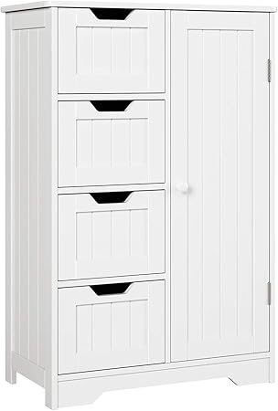 Vasagle Lhc41w Buffet De Salle De Bain En Bois Avec 4 Tiroirs Porte D Armoire Etagere Reglable Salon Cuisine Couloir Profond Pose Libre Blanc Amazon Fr Cuisine Maison