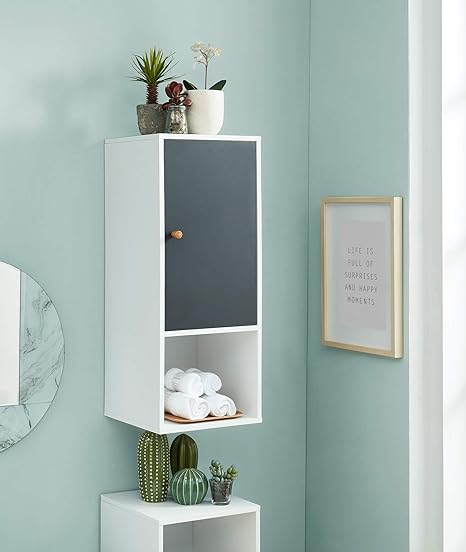 Tendance Meuble Haut De Salle De Bain A Fixer Au Mur 1 Rangement 1 Porte Coloris Blanc Et Gris Amazon Fr Cuisine Maison