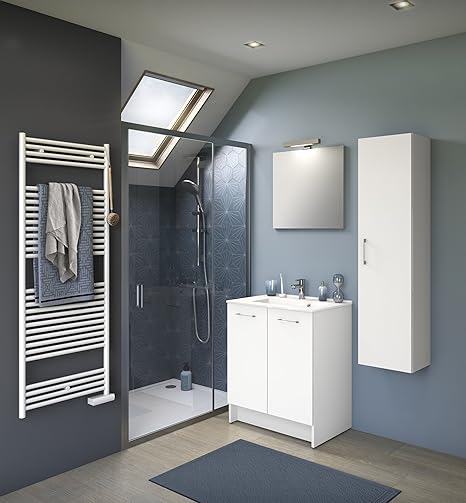Experts Du Bain Meuble De Rangement Salle De Bain Sur Socle Blanc Simple Vasque 70 Cm Amazon Fr Cuisine Maison