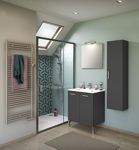 Experts Du Bain Meuble De Rangement Salle De Bain Sur Pieds Gris Fonce Simple Vasque 70 Cm Avec Mitigeur Amazon Fr Cuisine Maison