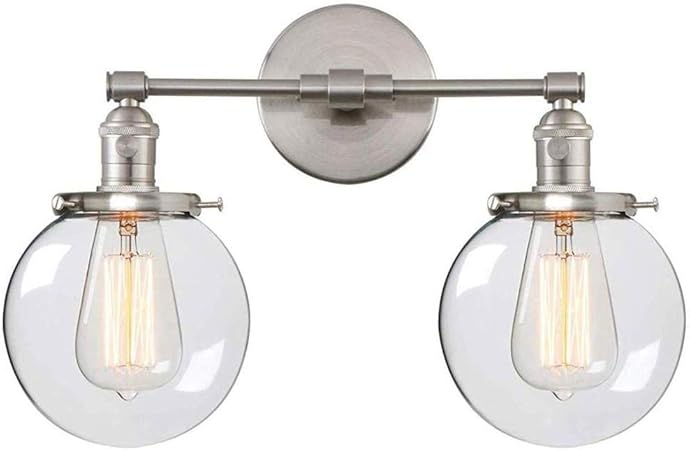 Wanmei Applique Murale De Salle De Bains Avec Interrupteur Et Deux Lampes De 15cm Globe En Verre Clair Abat Jour Lampe Murale Industrielle Pour Salle De Bains Miroir Lampe 2 Lumieres E27 Amazon Fr Cuisine