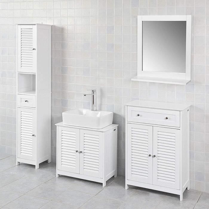 Vasagle Meuble De Salle De Bain Armoire Double Porte Rangement Planches Interieures Reglables Charniere Avec Amortisseur Portes En Blanc Brillant Bbk41wt Pas Cher Achat Vente Meuble Bas Salle De Bain Rueducommerce