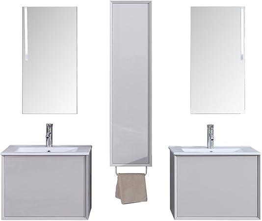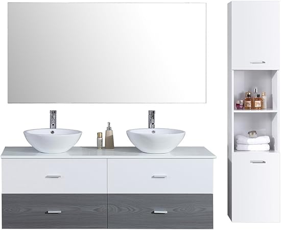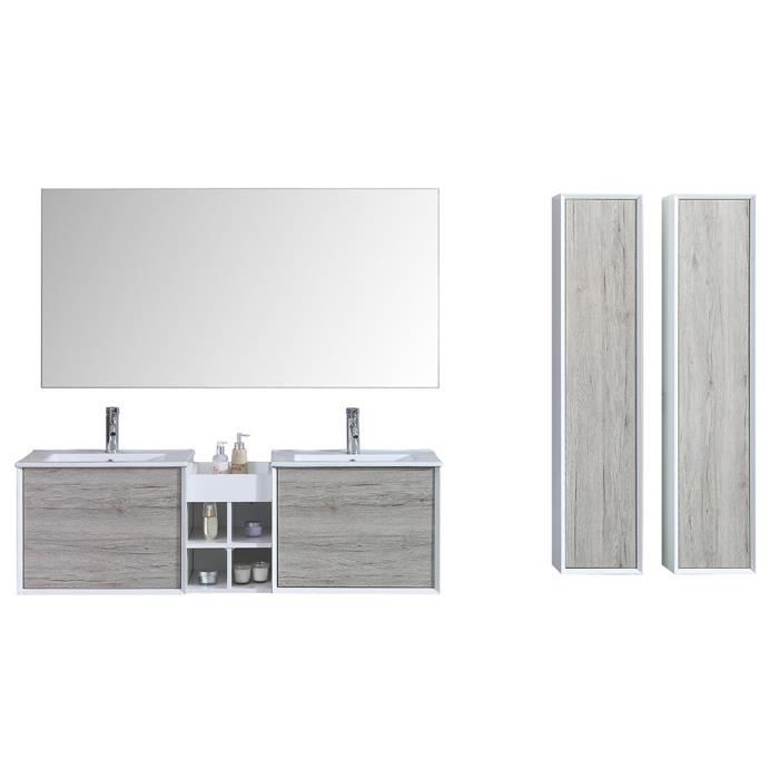 Ensemble De Salle De Salle Double Vasque Avec Colonne De Rangement Et Miroir Gris Achat Vente Salle De Bain Complete Ensemble De Salle De Salle Cdiscount