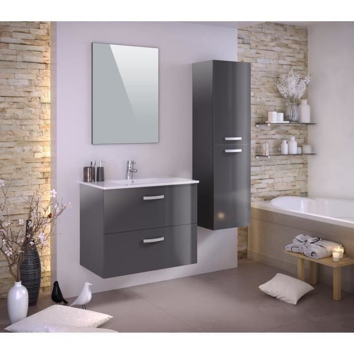 Ensemble Complet Meuble Salle De Bain Gris Laque Double Vasques Carrees