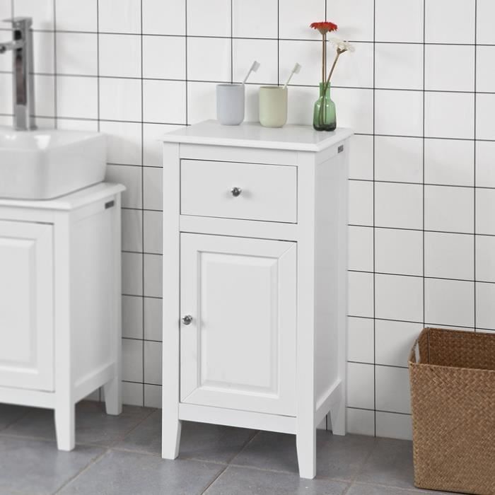 Meuble De Salle De Bain Meuble De Rangement Planche Reglable En Hauteur 60 X 30 X 81 Cm Blanc Bbc49wt Vasagle Avec 3 Tiroirs Et 1 Placard Vente De Vasagle Conforama