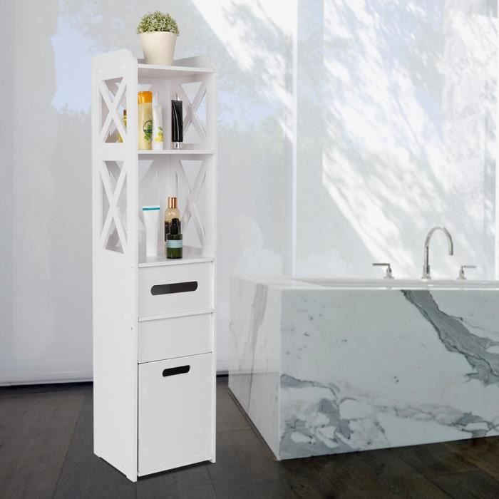 Meuble Colonne De Rangement D Angle Pour Salle De Bain En Bois Blanc Gamme Mediterranee Amazon Fr Cuisine Maison