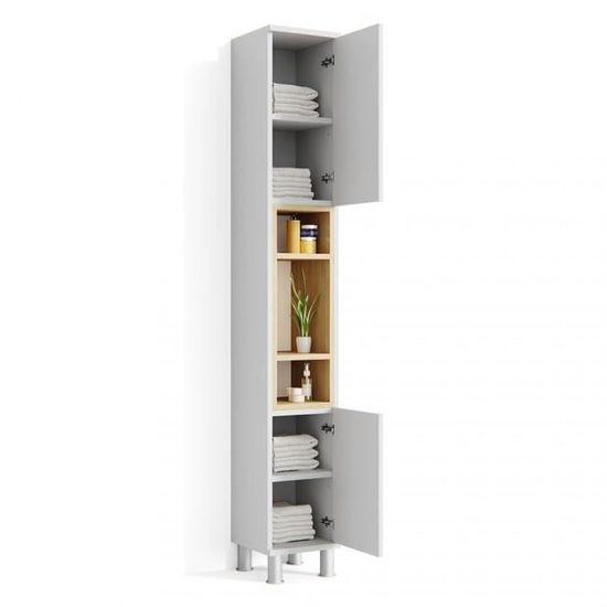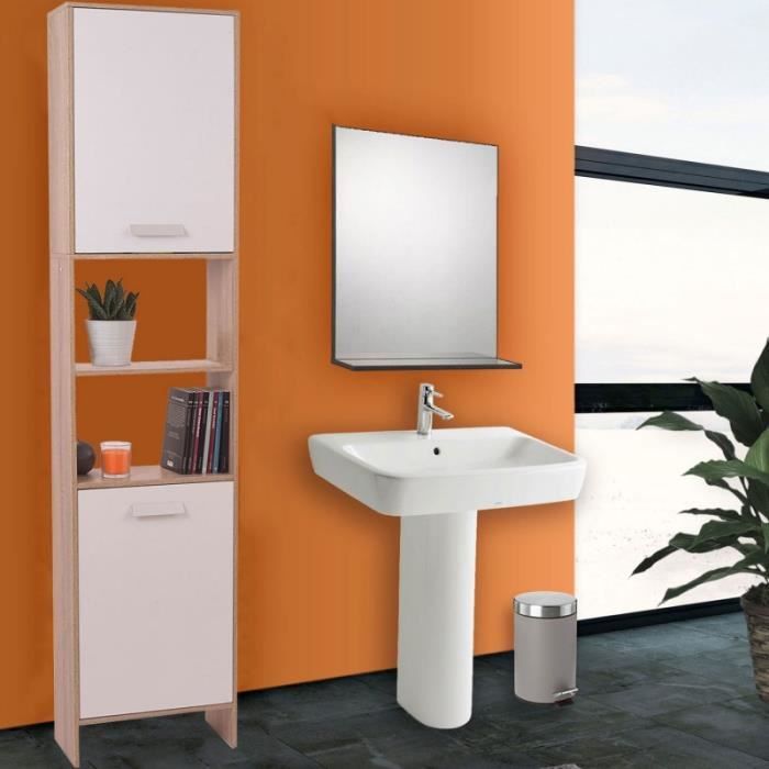 Colonne De Salle De Bain Blanche Aspect Chene 200 Cm Achat Vente Colonne Armoire Sdb Colonne De Salle De Bain Cdiscount