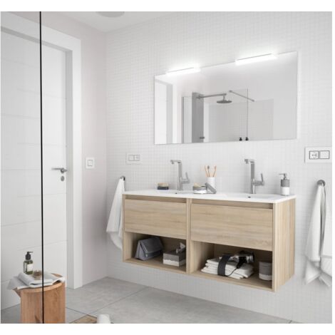 Meuble Salle De Bain Harmonie Chene 120 Cm Double Vasque En Pierre Compacte Noir 2 Tiroirs Mi Meuble Salle De Bain Meuble Double Vasque Salle De Bain Design