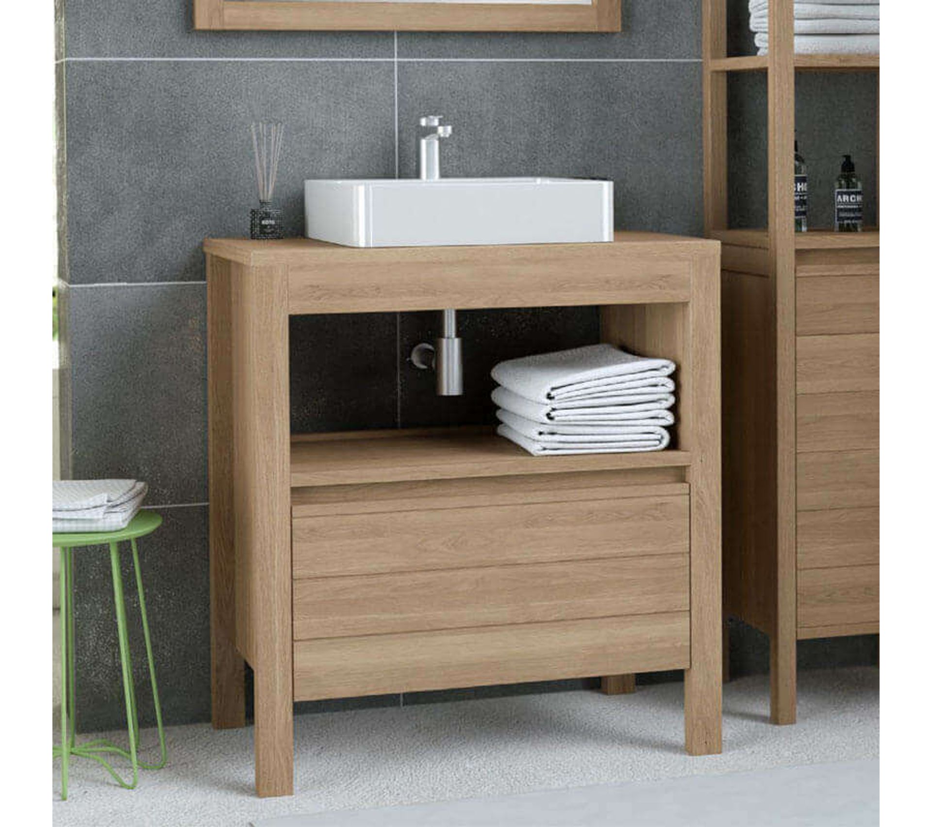 Meuble De Salle De Bain En Chene Massif 80 Cm Ensemble Napoli Bois Clair Hellin Depuis 1862 La Redoute