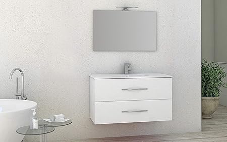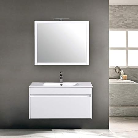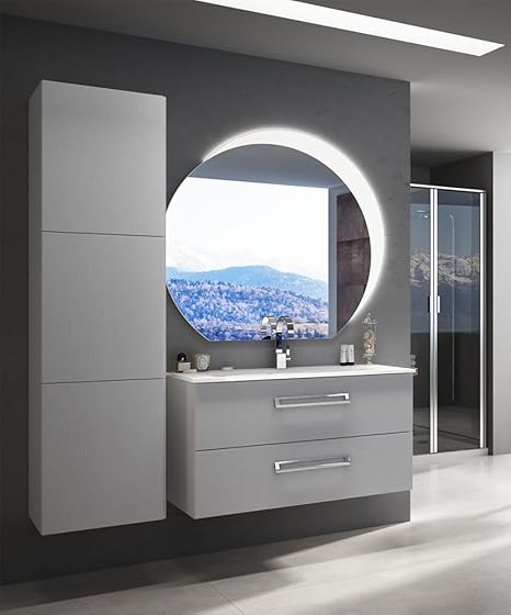 Meuble De Salle De Bain Suspendu Moderne Avril Gris Taupe Dimensions 100 Cm Miroir A Led Lavabo Colonne Et Commode Amazon Fr Cuisine Maison