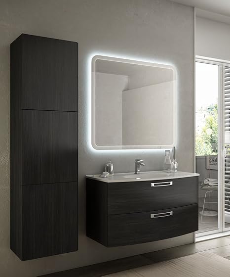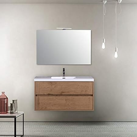 Planetaffari Meuble De Salle De Bain Suspendu En Chene Slavonia 100 Cm Avec Miroir Led Touch Serie Oslo Amazon Fr Cuisine Maison