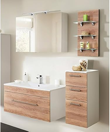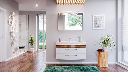 Fackelmann Ensemble De Meubles De Salle De Bain 5 Pieces Rondo Avec Lavabo Suspendu En Fonte 100 Cm Eclairage Led Et Miroir De Salle De Bain Amazon Fr Cuisine Maison