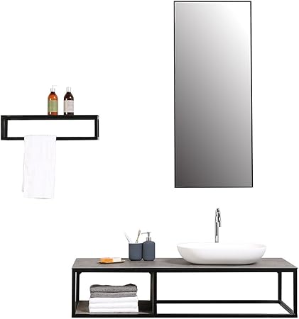 Interougehome Meuble De Salle De Bain Simple Vasque Avec Miroir Et Etagere Style Industriel Amazon Fr Cuisine Maison