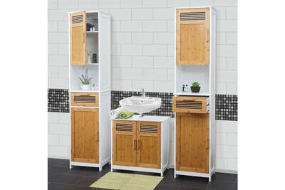 Relaxdays Meuble Dessous De Lavabo Bambou Meuble Sous Vasque Evier Salle De Bains Hxlxp 61 X 60 X 30cm Blanc Nature Amazon Fr Cuisine Maison