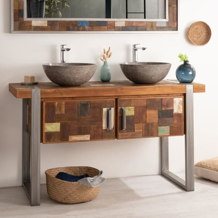 Meuble Salle De Bain Bois Metal Vasque A Poser Et Miroir Ambiente 11 Ad Bath