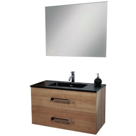 Meuble Salle De Bain Mob In Meuble Salle De Bain Frene 80 Cm Avec Vasque Resine Noire Tiga Darty