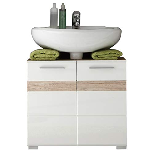 Interougehome Meuble De Salle De Bain Simple Vasque Avec Colonne De Rangement En Blanc Et Noir Brillant Amazon Fr Cuisine Maison
