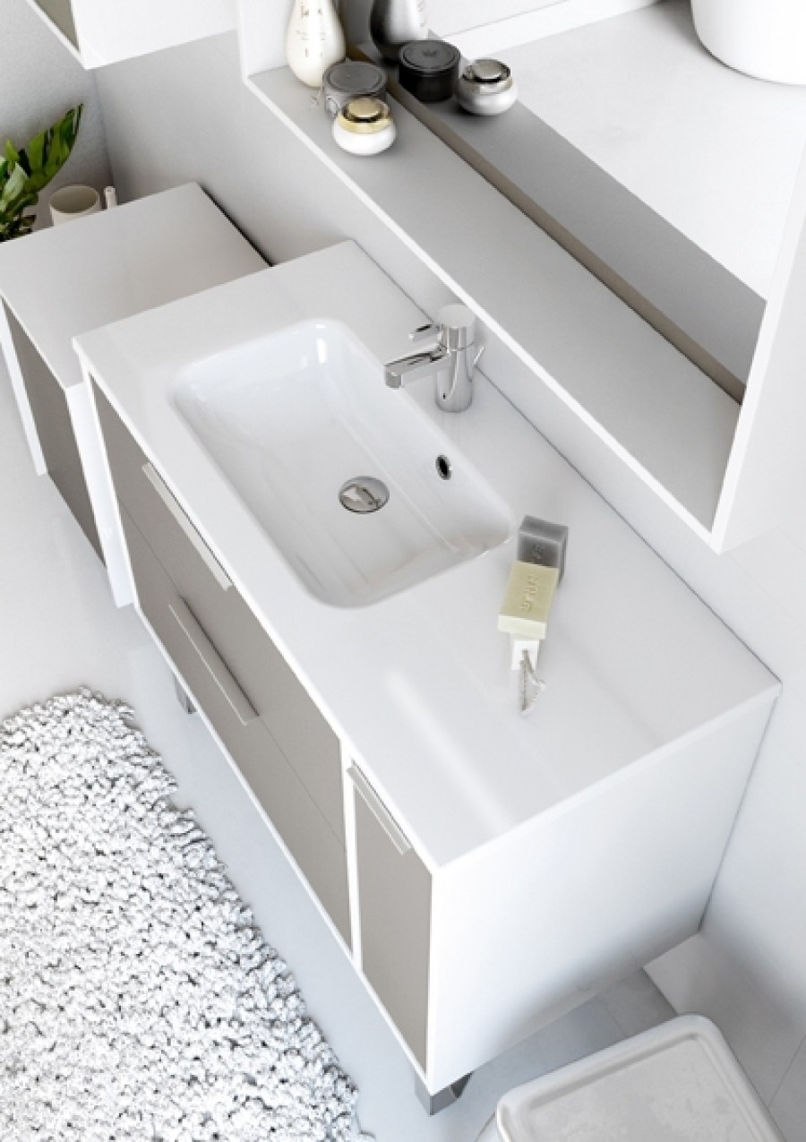 Ducha Es Indus Ensemble De Salle De Bain Avec Meuble Et Plan Vasque En Ceramique 100cm Blanc Brillant Amazon Fr Cuisine Maison
