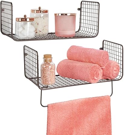 Mdesign Etagere Murale Meuble De Rangement Metallique Polyvalent Pour Salle De Bain Garage Ou Buanderie Set De Deux Pieces Avec Porte Serviette Couleur Bronze Amazon Fr Cuisine Maison
