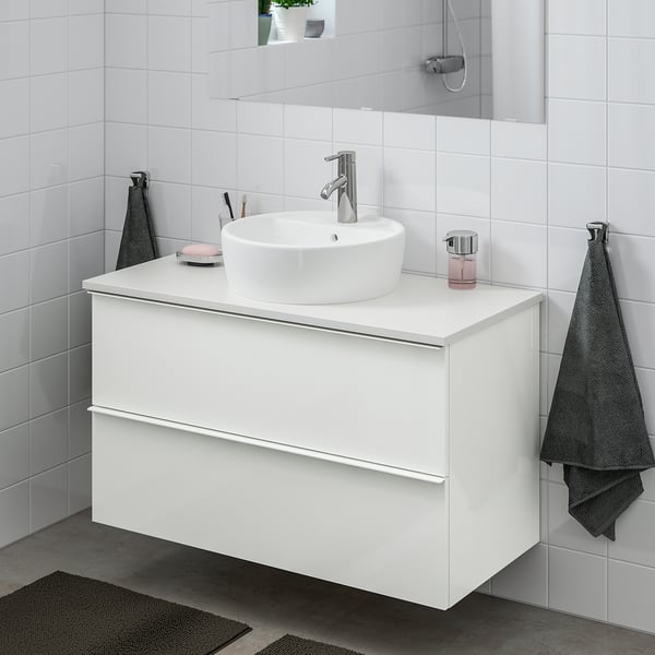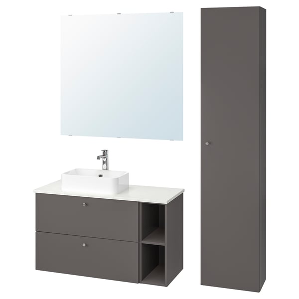 Godmorgon Tolken Horvik Mobilier Salle De Bain 7 Pieces Gillburen Gris Fonce Marbre Mitigeur Lavabo Brogrund Ikea