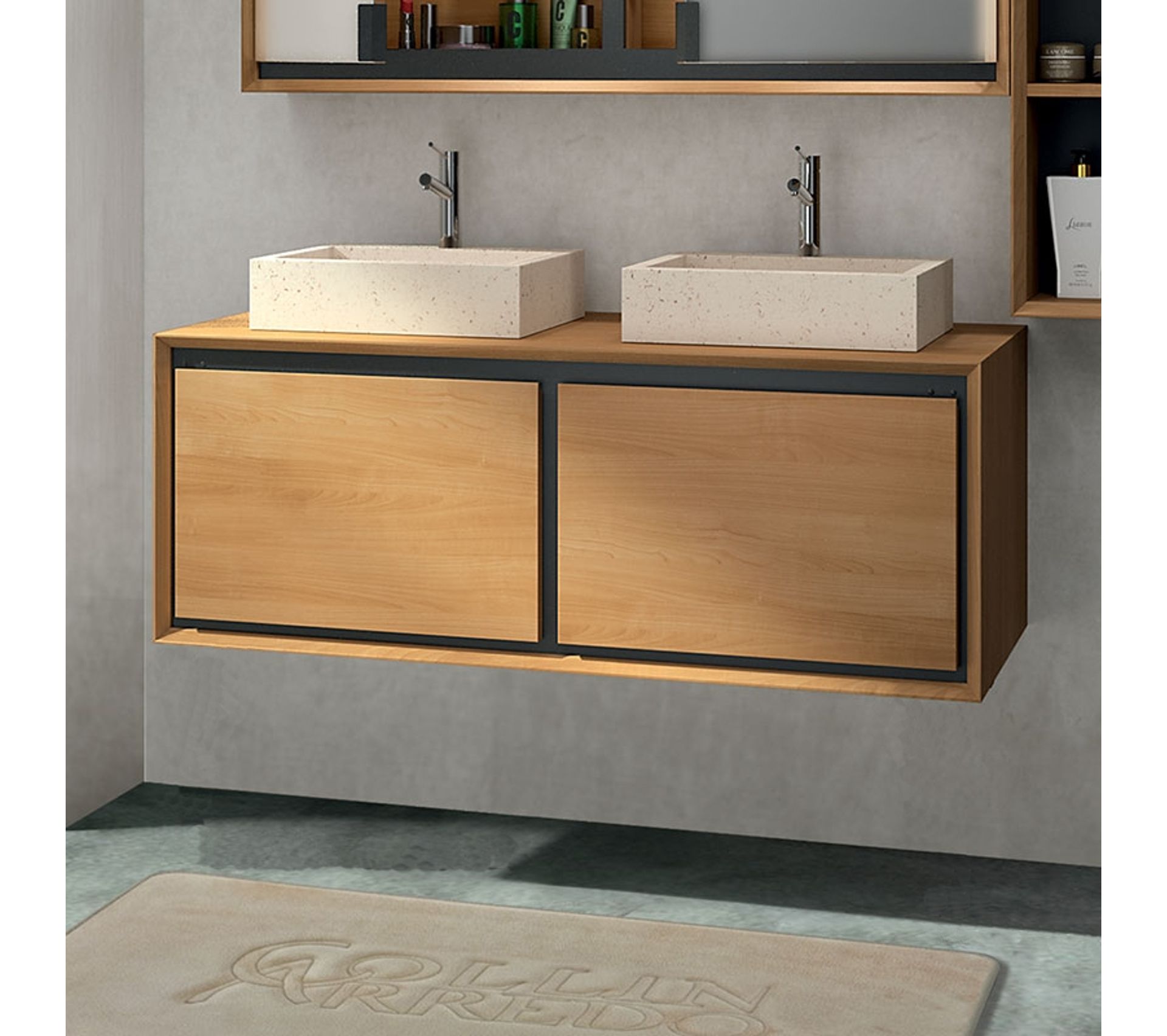 Meuble Suspendu Avec Double Vasque Integree 130 Cm Iroko Bois Achat Vente Meuble Vasque Plan Meuble Suspendu Avec Double Cdiscount