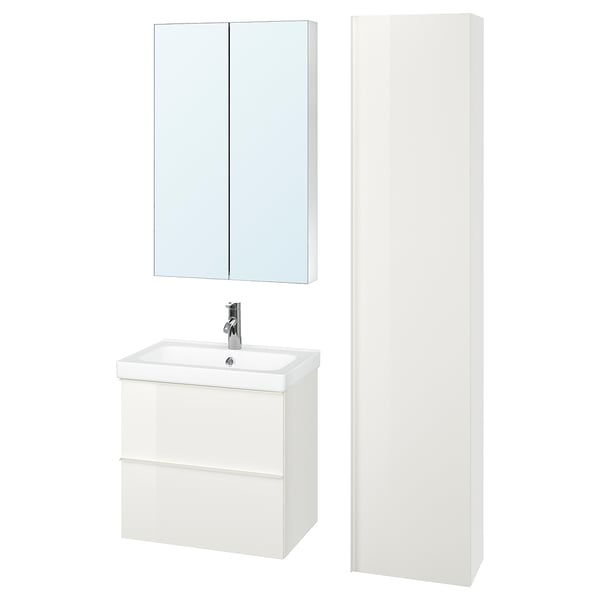 Godmorgon Braviken Mobilier Salle De Bain 5 Pieces Brillant Gris Mitigeur Lavabo Brogrund Ikea