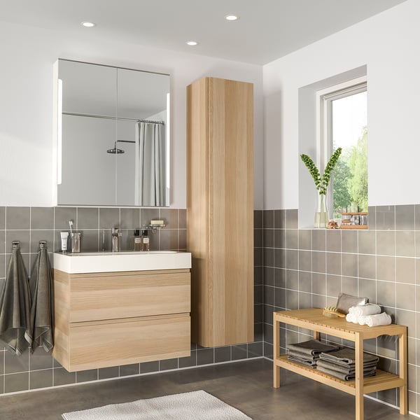Godmorgon Braviken Mobilier Salle De Bain 5 Pieces Effet Chene Blanchi Mitigeur Lavabo Brogrund Ikea