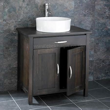 Clickbasin Ohio Wenge Chene Massif 75 Cm De Largeur Double Porte De Salle De Bain Avec Lavabo Rond Amazon Fr Cuisine Maison