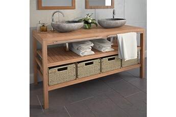 Meuble De Salle De Bain Armoire De Toilette Blanche Avec 4 Paniers Teck Massif 132x45x75cm Achat Vente Colonne Armoire Sdb Meuble De Salle De Bain Cdiscount