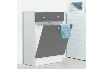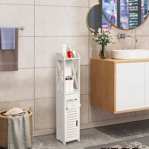 Meubles De Salle De Bains Avec Colonne Et Miroir Blanc Et Bois Sans Vasque Laita Miliboo