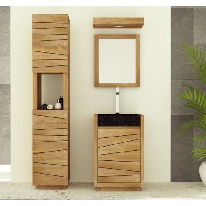 Loft Ensemble Salle De Bain En Bois Et Placage Teck Massif Simple Vasque Pieds En Metal L 80 Cm Naturel Et Noir Achat Vente Salle De Bain