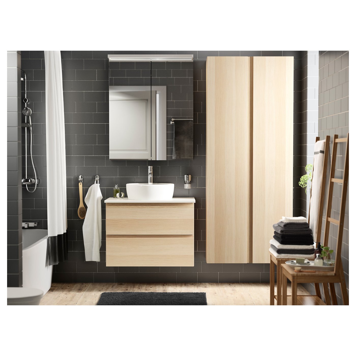 Godmorgon Braviken Mobilier Salle De Bain 5 Pieces Effet Chene Blanchi Mitigeur Lavabo Brogrund Ikea