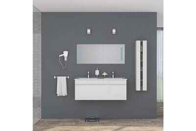 Meuble De Salle De Bains Suspendu De 60 Cm Avec Vasque Et Miroir En Ceramique Kv Store