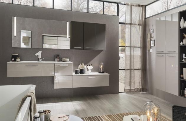 Salle De Bain Mobilier Meuble Bois Vasque Lavabo Incruste Miroir Lumineux Led Etagere Cubique Su Idee Salle De Bain Salle De Bain Tendance Meuble Salle De Bain