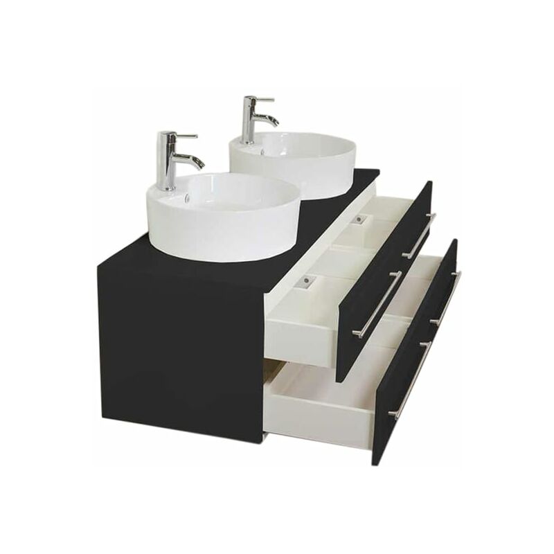 Glass3 Meuble Salle De Bain Suspendu Noir Brillant 120 Cm Double Vasques Verre