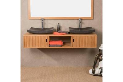 Wanda Collection Meuble De Salle De Bain Suspendu Double Vasque En Teck Mya 145 Cm Pas Cher Achat Vente Meuble Bas Salle De Bain Rueducommerce