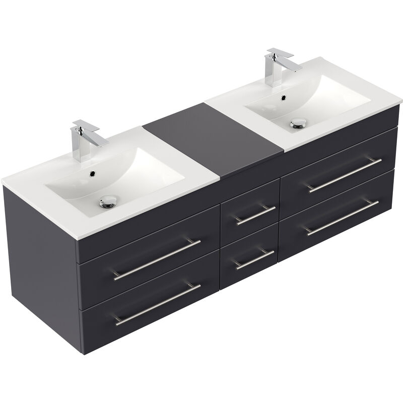Meuble Salle De Bain Double Vasque Milano Xl 172cm Anthracite Satine Meuble Salle De Bain Double Vasque Meuble Salle De Bain Emotion 24 Fr