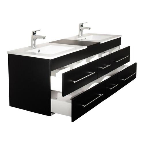 Meuble De Salle De Bain En Bois Avec Double Vasque Noir Brillant Achat Vente Salle De Bain Complete Meuble De Salle De Bain Noir Cdiscount