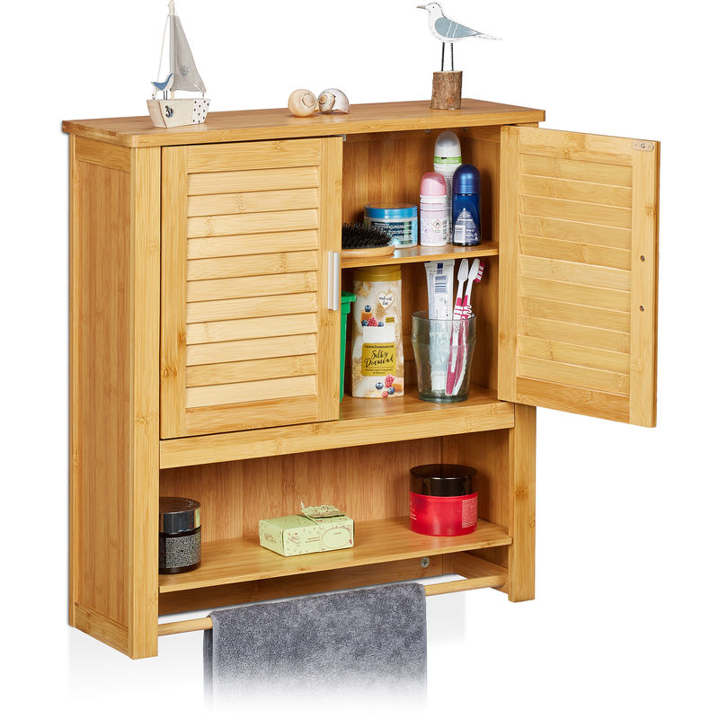 Armoire Etagere Petit Meuble Table 2 Portes Bambou Salle De Bain Salon Multifonction 92 Cm 3213056 Mobilier 4727619