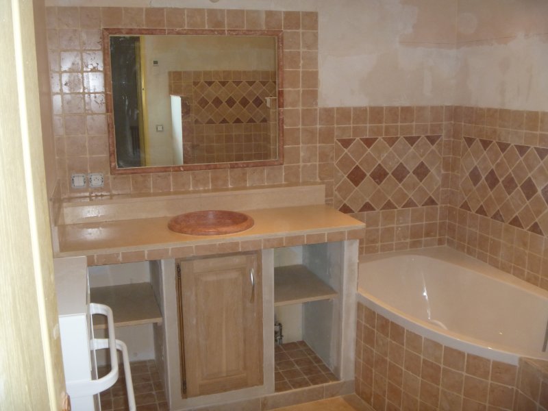 Meuble De Salle De Bain En Bois Massif Avec Vasque En Pierre Naturelle Et Miroir Hellin