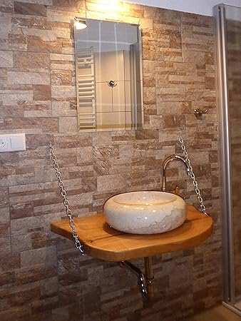 Nt Tino Kitty Meuble De Lavabo Rustique En Bois Avec Lavabo En Pierre Naturelle Et Kit De Montage Amazon Fr Cuisine Maison