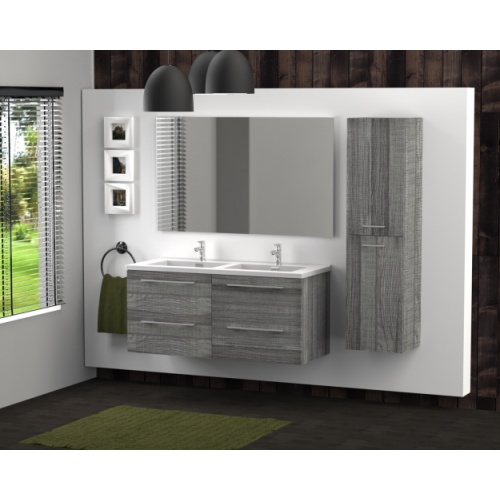 Cordoue Meuble Salle De Bain Noyer 141 Cm Double Vasque Pierre Meuble Salle De Bain Meuble De Salle De Bain Meuble Salle De Bain Ikea