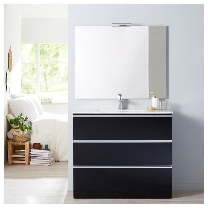 Ensemble Vinci 100 Cm Avec Coquette 2 Tiroirs Etagere Noir Mat Chene Africain Plan Vasque