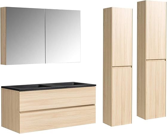 Stano Meuble Salle De Bain Factory En Teck Et Metal Noir 120 Cm Avec Plan Vasque Amazon Fr Cuisine Maison