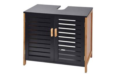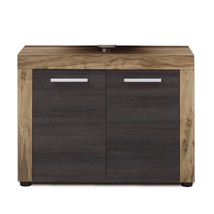 Meuble De Salle De Bains Sous Vasque Ginko Noir 2 Tiroirs Cotes Decors L60 X H70 X P40 Cm Oskab