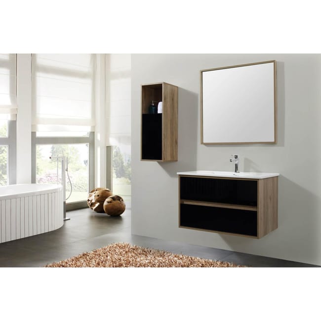Generique Luna Ensemble De Meubles De Salle De Bain Vasque Miroir Meuble Sous Vasque 60 Cm Noir Mat Amazon Fr Cuisine Maison
