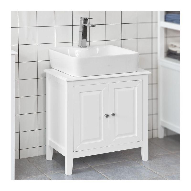 Esituro Sbp0014 Meuble Sous Lavabo Salle De Bain 2 Portes Sans Lavabo Meuble Sur Pied Blanc Amazon Fr Cuisine Maison