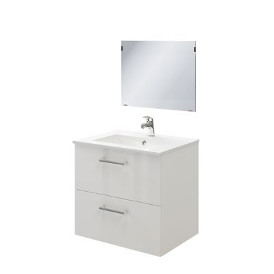 Meuble De Salle De Bains Volga 60 Cm Blanc Matiere Du Caisson Ppsm Gris Epaisseur 15 Mm Matiere Des Meuble De Salle De Bain Salle De Bain Bathroom Vanity